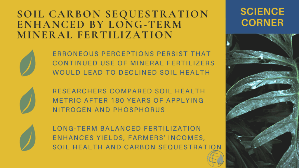Soil organic matter is crucial for food security, soil health, climate mitigation and agroecosystem sustainability. Yet, there are still widely held perceptions that the continued use of mineral fertilizers might lead to a decline in soil organic carbon or soil health.